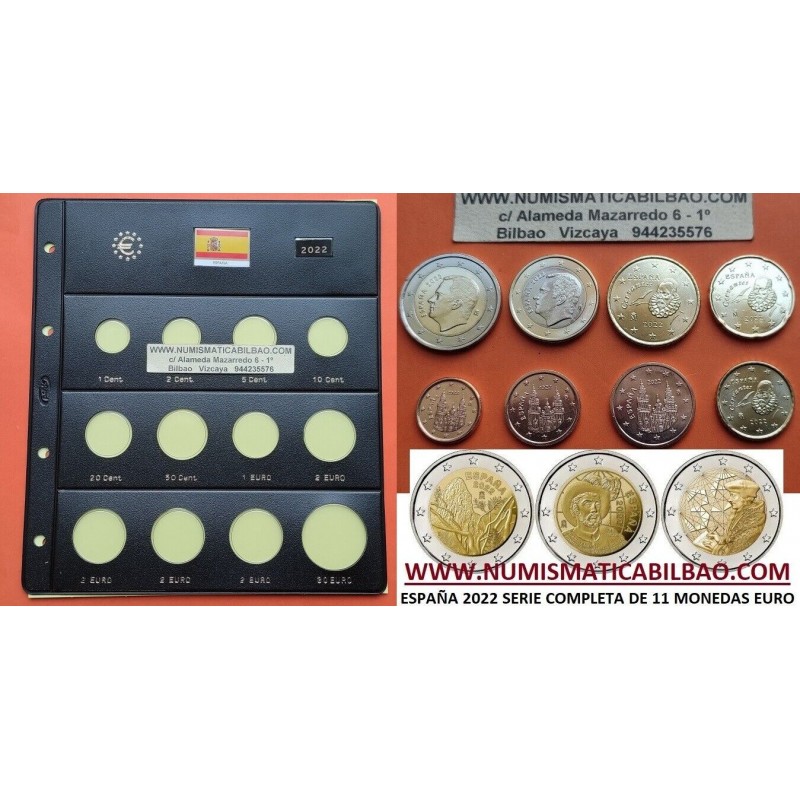 . ENVIO INMEDIATO x ESPAÑA MONEDAS EURO 2022 SC 2 EUROS 2022 ERASMUS + ELCANO + GARAJONAY + 40 EUROS 2022 PLATA + HOJA PARDO