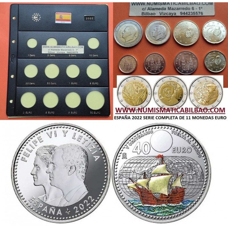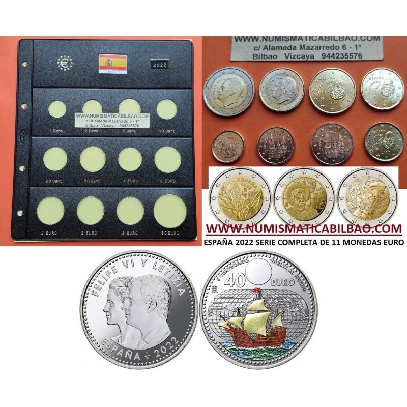 . ENVIO INMEDIATO x ESPAÑA MONEDAS EURO 2022 SC 2 EUROS 2022 ERASMUS + ELCANO + GARAJONAY + 40 EUROS 2022 PLATA + HOJA PARDO
