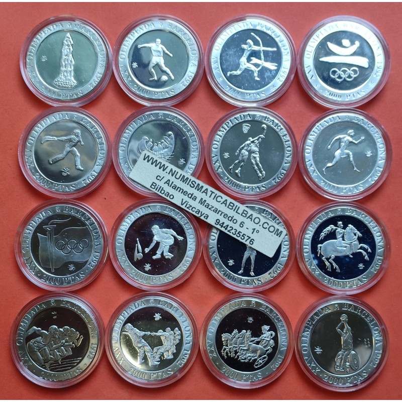 COLECCION COMPLETA DE 16 MONEDAS DE 2000 PESETAS 1990/1991/1992 DE LOS JUEGOS OLIMPICOS DE BARCELONA 1992