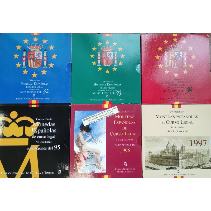 JUEGO COMPLETO DE CARTERAS FNMT SERIES OFICIALES DE CURSO LEGAL DE LOS AÑOS 1992 1993 1994 1995 1996 1997 1998 1999