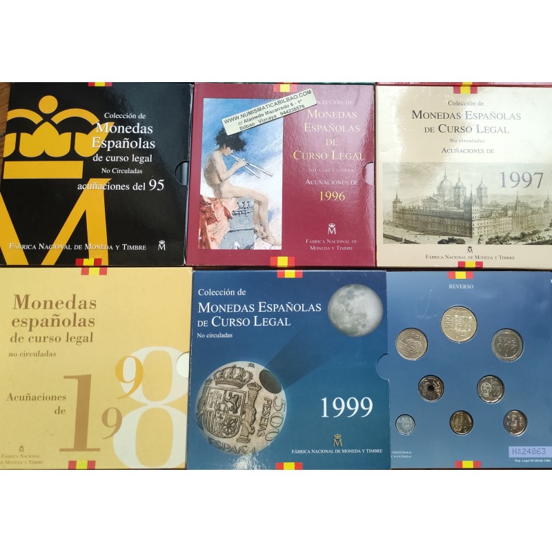 JUEGO COMPLETO DE CARTERAS FNMT SERIES OFICIALES DE CURSO LEGAL DE LOS AÑOS 1992 1993 1994 1995 1996 1997 1998 1999
