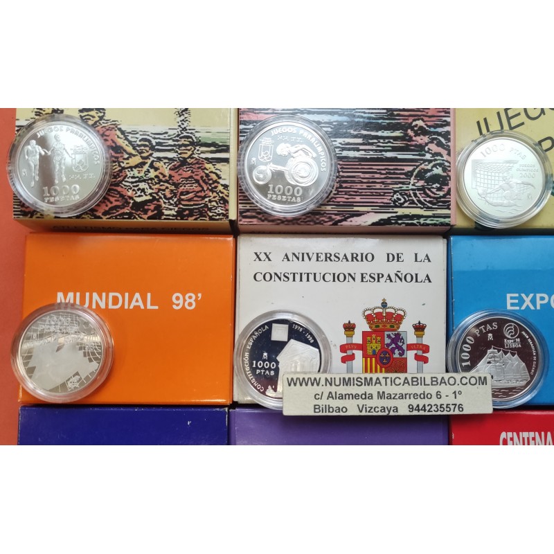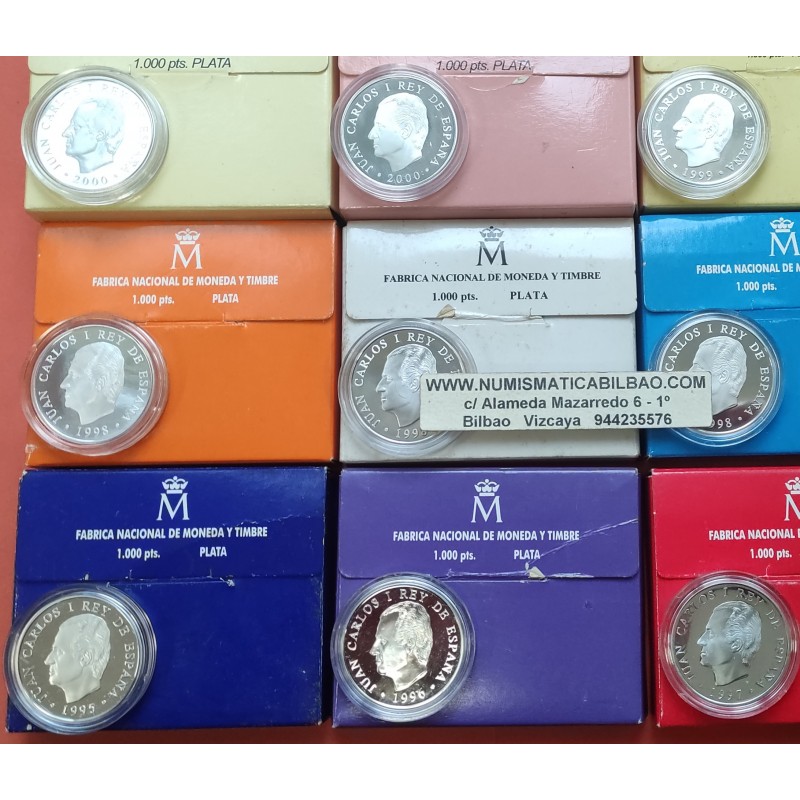 9 MONEDAS DE 1000 PESETAS EN PLATA CALIDAD